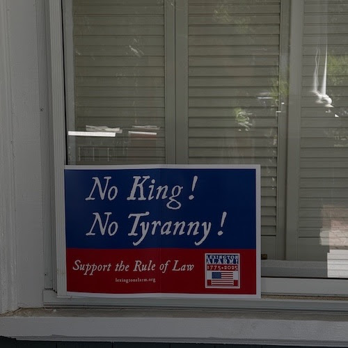 - When folded for mailing, the No King! No Tyranny! message is on the inside. On the back side you’ll find the story of Lexington Alarm! In April 1775, at the dawn of the American Revolution, couriers on horseback raced to Lexington and Concord to warn citizens and local militia about advancing British troops. Soon, an expanded network of riders spread the call for help throughout New England and beyond, rallying patriots to stand and resist tyranny.Availability: